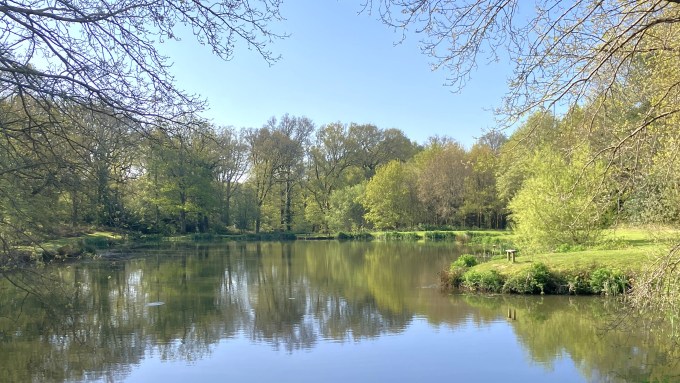 On Saturday we celebrated a family birthday with breakfast at a local café and at lunch time I set out for Petworth with a full stomach. As the river was closed, my choice was limited to either the lakes at Stag Park or Little Bognor. I was not in the mood for fussy trout, I just wanted to end the season by catching a couple of fish while relaxing in the sun. A strong south westerly wind gusted around Little Springs rippling the surface creating cats-paws that looked like big trout swirling.