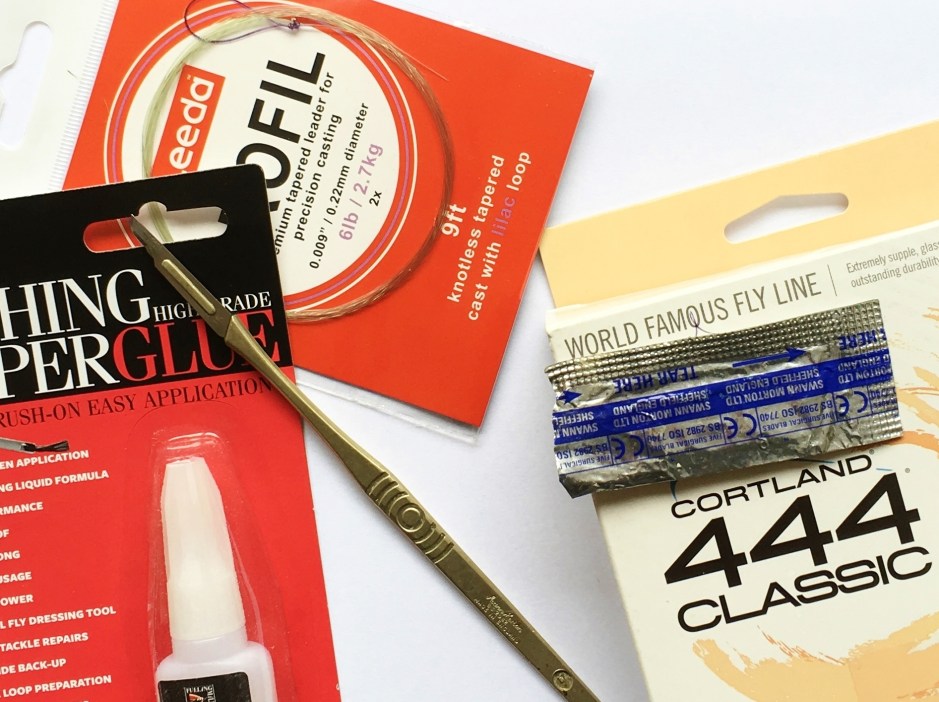It takes about ten minutes, mostly waiting for the superglue to set. It’s simple, waterproof and tough. The joint runs through the rod rings and has never let me down. The yellow marker pen highlights the tip of the fly line when I’m fishing deep with a nymph or buzzer. I put Gink on the leader if I want it to float and run it through a lump of mud if I want it to sink.