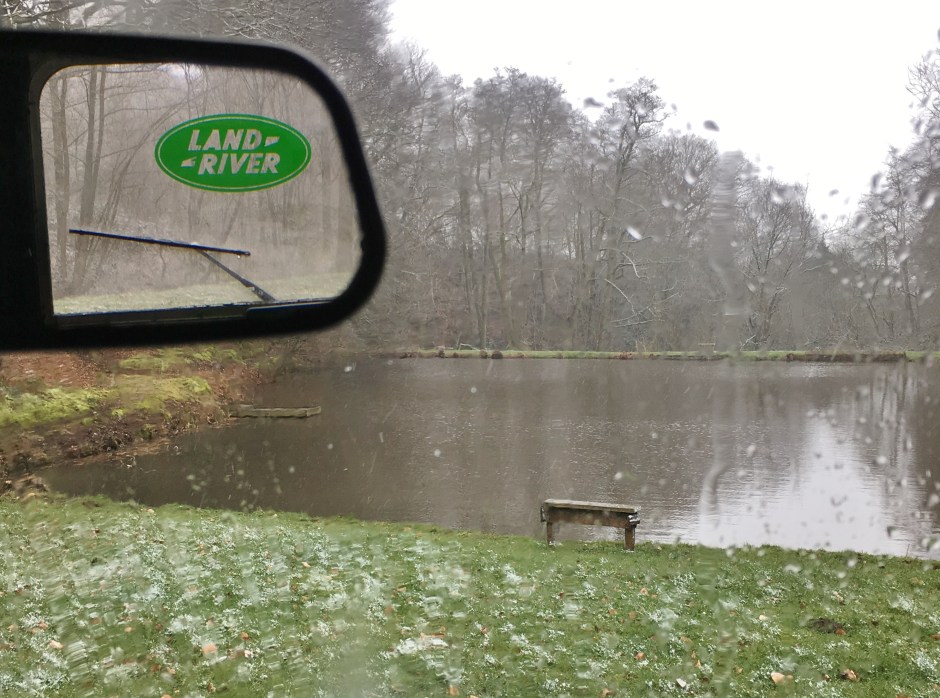 The morning was extremely cold with a blustery East wind. By 8:00am it was snowing, I was reminded of ice cold water and frozen rod rings on Opening Day at Weirwood. I visited Little Bognor, then drove to Great Springs for a cup of tea and a chat. The fields were bright, lime green and the Downs were dusky blue shadows. The snow storm got heavier and the landscape disappeared in a white out. Little Springs looked uninviting, the wind was driving the snow horizontally. I went back to Little Bognor where I hoped to find shelter. I sat in the Land Rover watching the snow, waiting for it to ease off.