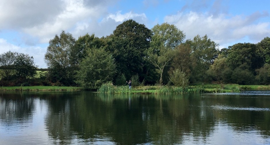 A roll cast or two moved the fish further out into the lake. The overhanging Oak tree claimed three flies before I rested the fish. A little later the shoal moved closer and I finally had a chasing take. The line screeched off the reel and then stopped, I assumed the turns were jammed. Not so, I had chosen my Hardy Duchess with the ‘Weight Backward’ river line. It was only fifteen yards long, I’d run out of line. One more worrying tug and the fish came towards me, knocking the tippet. A sure sign of a foul hooked fish. The hook had pulled and re-hooked near the Trouts tail.