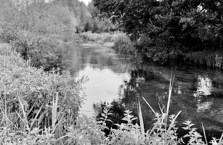 I stood under cover and dripped. The sun came out and I changed my boots. My T shirt and trousers felt like a wetsuit. I wandered, steaming, back to the pool but the water was coloured and weed debris made fishing impossible. Cut weed left on the racks upstream had been washed off by the rising water level. I waited an hour but the water became a thick grey soup from the road washings so I reluctantly left. I felt relieved to have caught a Trout before the storm arrived. My iPhone is behaving erratically, it’s not storm proof.