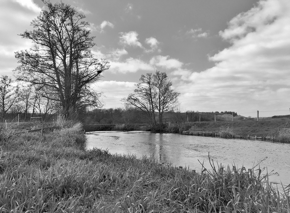 Flies had been sorted out, new leaders and tippet purchased, everything was in order. It was not a day for messing about, I wanted to catch something. I stopped at the Fish Pass and was surprised to see that the water was well above its normal level, slightly coloured but fishable. I worked a black spider around the slacks, expecting a solid pull at any moment. I moved above the weir and fished down the long straight and into the bend but had no response. The wind was cruel and I decided to drive to Rotherbridge, I thought the slower shallow water would help the fish see the fly.