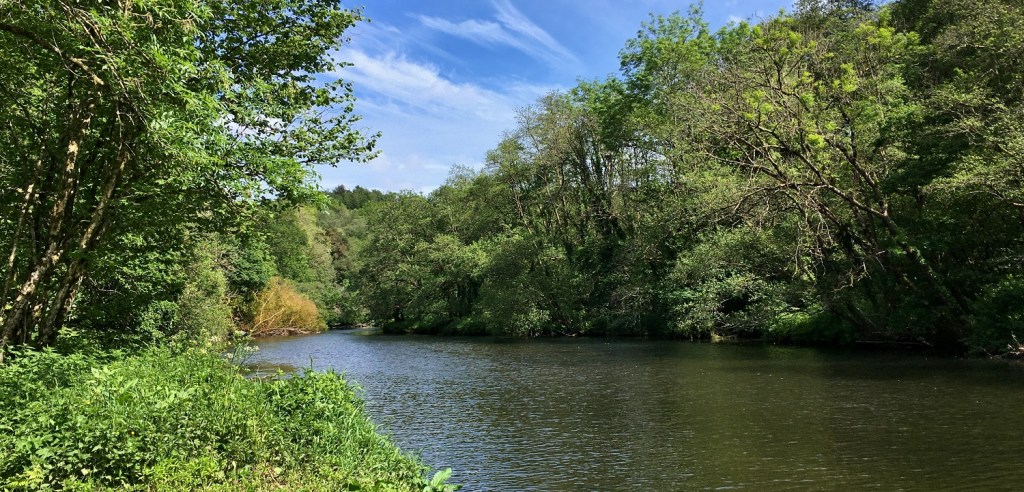 Olives, midges and the occasional Mayfly provided a feast for the fish and noisy, splashy rises every few minutes revealed their position. Usually along the far tree line or in midstream, way beyond my casting range. The slow, deep water was littered with the sunken remains of mature trees, washed downstream by the winter spates. It was impossible to wade and my backcast was restricted but I managed to work the big pool with a heavily weighted nymph. The fish were not impressed and gradually the rises petered out.