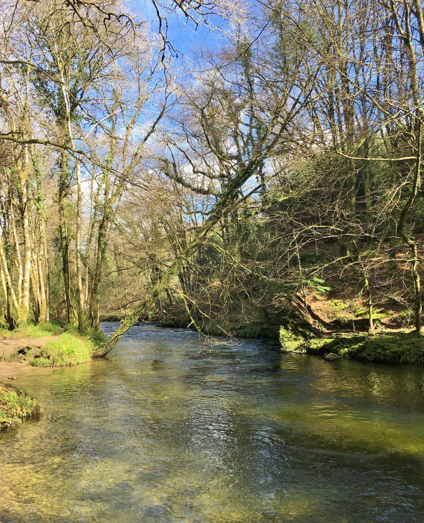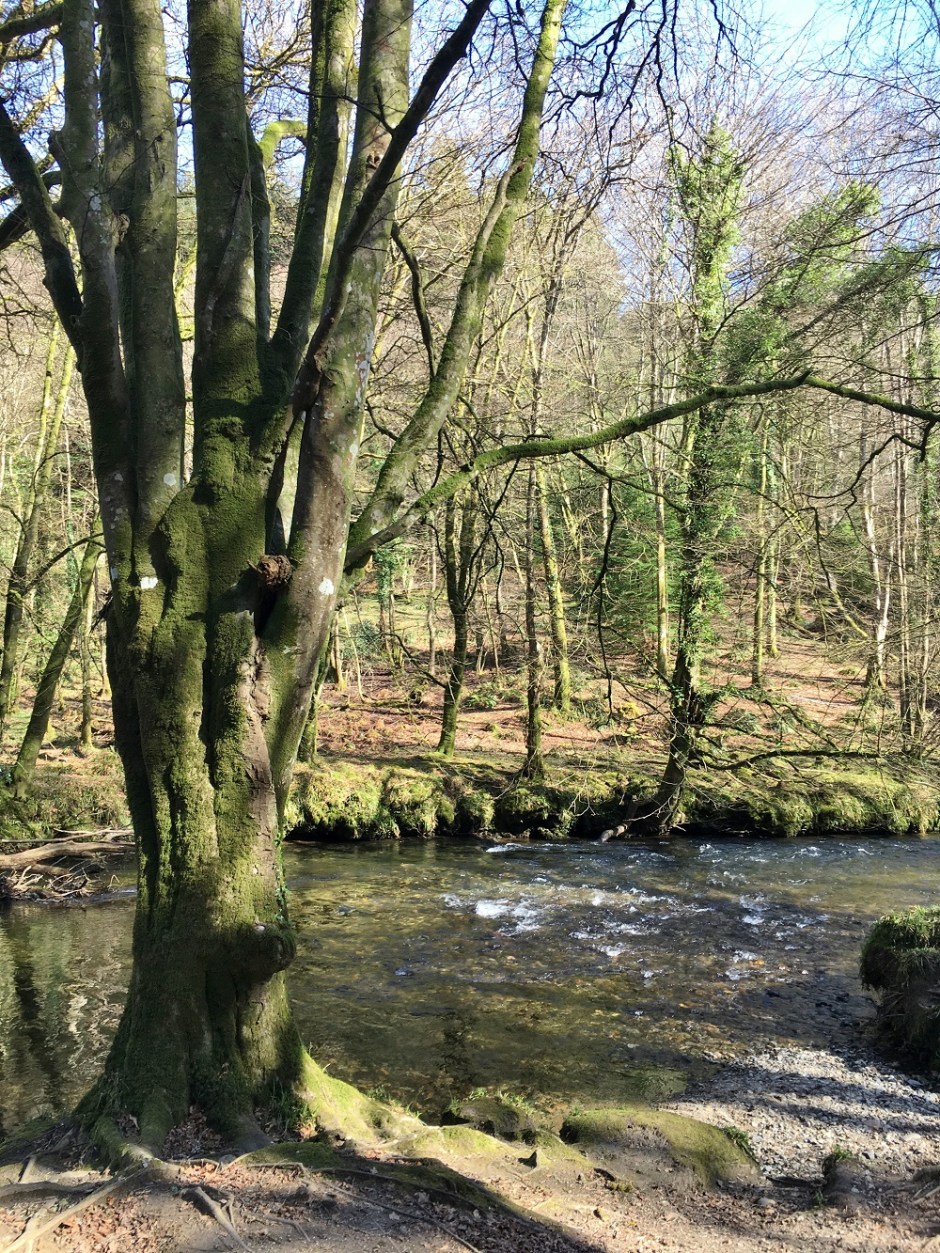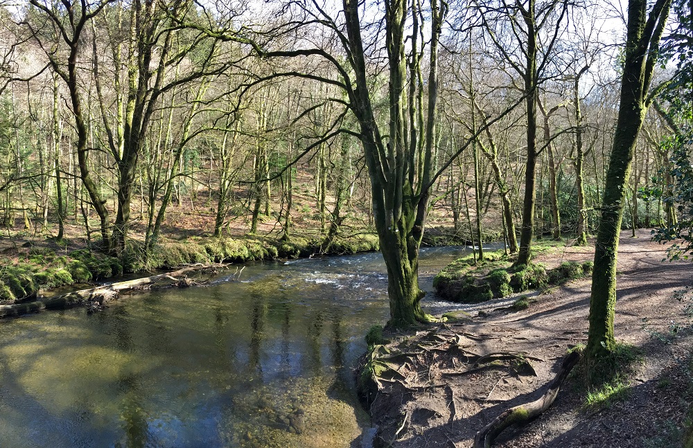 The walk started badly. In my haste to reach the river bank a hundred feet below, I left the path and headed down through the woodland on the valley side. The steep slope became steeper and I lost my footing. I crashed through the trees and down onto the stone path having jettisoned my rod in mid tumble. I checked that my rod was unbroken before my arms and legs. Badly winded and bruised I thought about abandoning my expedition but the river beckoned. The first pool swept under my bank and would surely hold a trout.