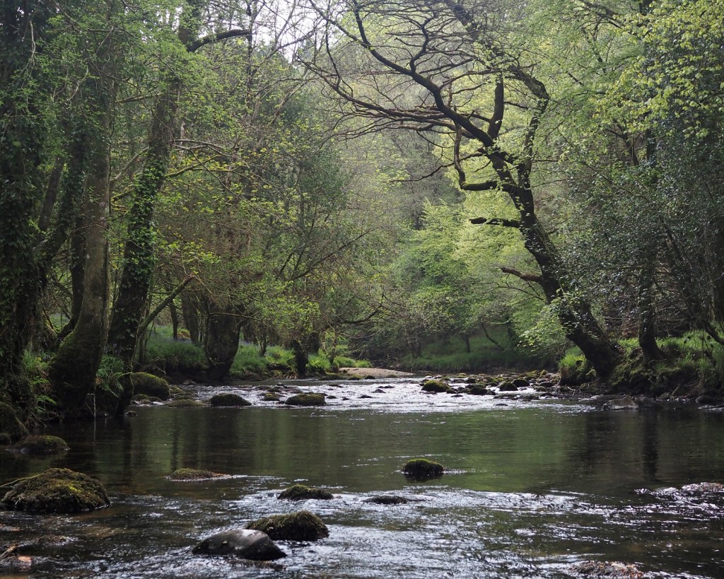 I decided to fish the River Plym, flies would be hatching and no spaniels are allowed in the woods. The flats just above the bridge looked inviting and I spent a while exploring the deep channels and pots with a nymph. No response. There never is but its a good place to warm up. One day I’ll get a fish there.