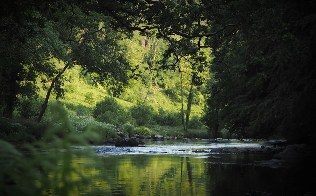 I walked slowly down to the big pool under the oak tree and sat on a pier of rock waiting for signs of rising trout. All the rocks were daubed with white guano, a sign that the fish had been eaten by goosanders. I rose another trout in the glide below the rock but didn’t connect.