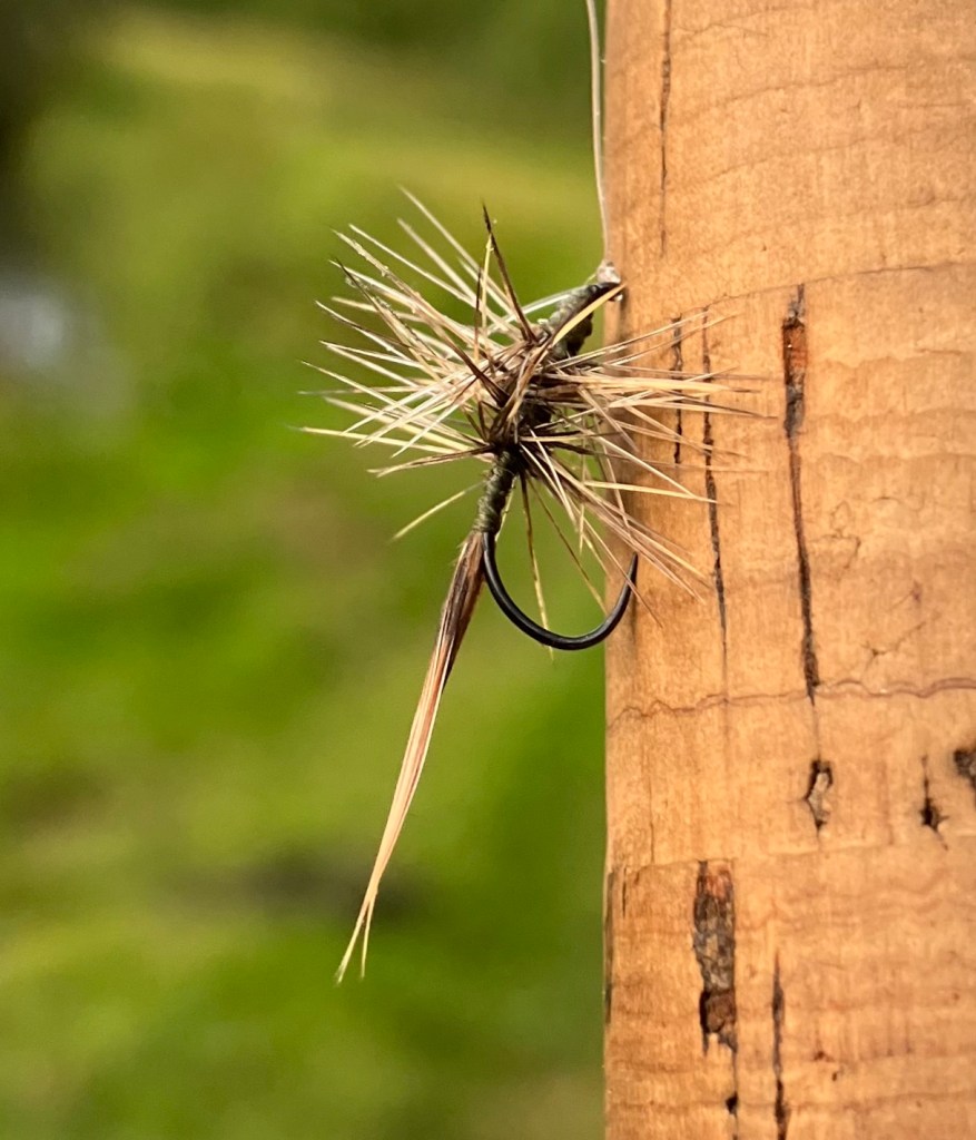 I had a few practice casts under the alder trees while I waited for a fish to rise. After twenty minutes I saw a rise and moved downstream, keeping well back from the river, using the marginal plants to break up my profile. I tried nymphs, a dry fly downstream and upstream to avoid drag but eventually lined the fish and put it down. Lots of mayfly hatched and made their way into the trees behind me. There were no birds and all of the duns made it to safety. Strangely, there were no mayfly spinners dancing.