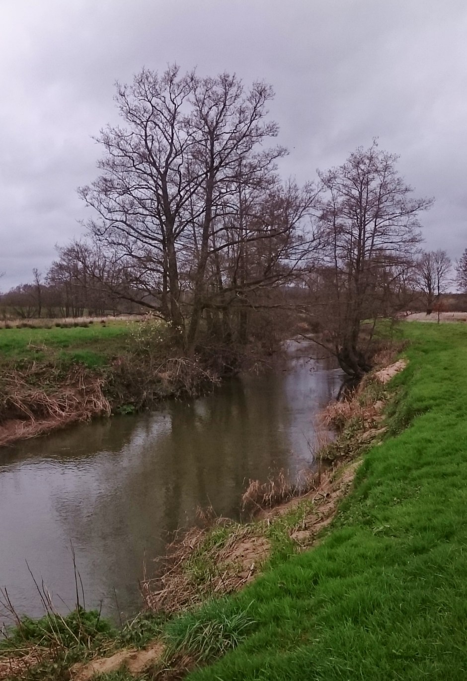 I crossed the bridge and wandered up to the big pool at Ladymead and fished it for half an hour. There was too much drag to get the fly deep so, after a rest in the sun, I moved further up. The weather was glorious, a soft Southerly breeze and high clouds. The Bumble Bees were buzzing loudly in the tops of the Willow trees and I saw my first butterfly of the year, a Peacock. The trip had turned into a walk by the river. I lost my fly in a snag and took that as a sign …. ‘Stop fishing, go to the Pub’.