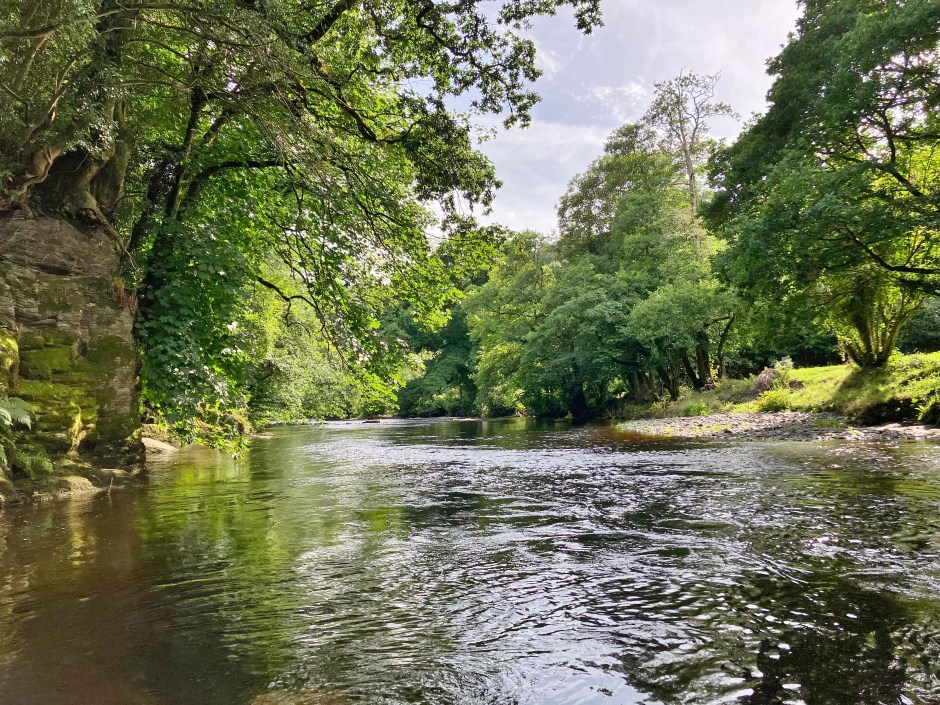 The Plym looked perfect and I knew that I had made the right choice. The water level was up a few inches but the water was not peat stained. The trees and bushes had been washed clean by the unrelenting August rain and there were no footprints or paw prints in the sand. I started at the bridge pool with a heavy nymph, flicking it under the arch and drifting it down and across. The deep pool failed to deliver.