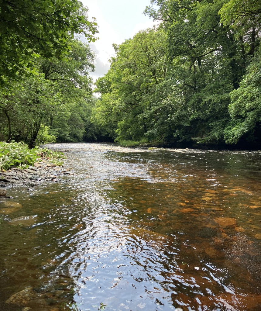 After flicking a nymph into a tree I settled into a rhythm and from the top of the beat, I worked all the usual pools and riffles downstream. The prolonged hot weather had stressed the trees which were shedding leaves. The river had just enough ash and hazel leaves tumbling around to make life difficult. The back eddies and slacks were unfishable, it’s amazing how easy it is to hook a leaf !