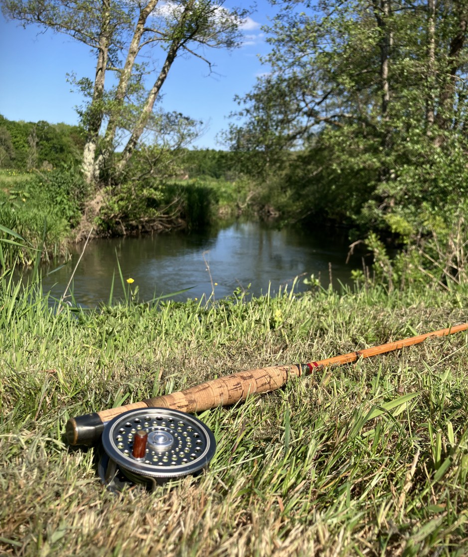In 1935 Pezon et Michel hired Charles Ritz as a technical consultant. The first split cane fly rods, with Ritz parabolic tapers, were sold in 1938. France declared war against Germany on 3 September 1939 and was invaded on 10 May 1940. Eighty five years later it seemed appropriate to use my restored Pezon et Michel fly rod to catch a trout from the river.