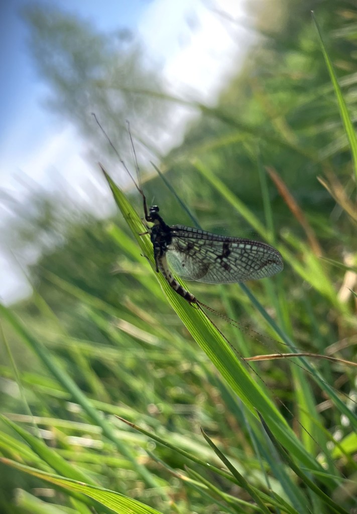 After a four hours of concentration I slumped on the grass in the shade. A trout rose a few feet from me, a splashy feeding rise. I tried everything I knew to tempt the fish but without a response. I sat and watched mayfly spinners rising and falling in the breeze. I left the river earlier than I had planned but was glad to hear that my companion had caught a few during the evening rise.