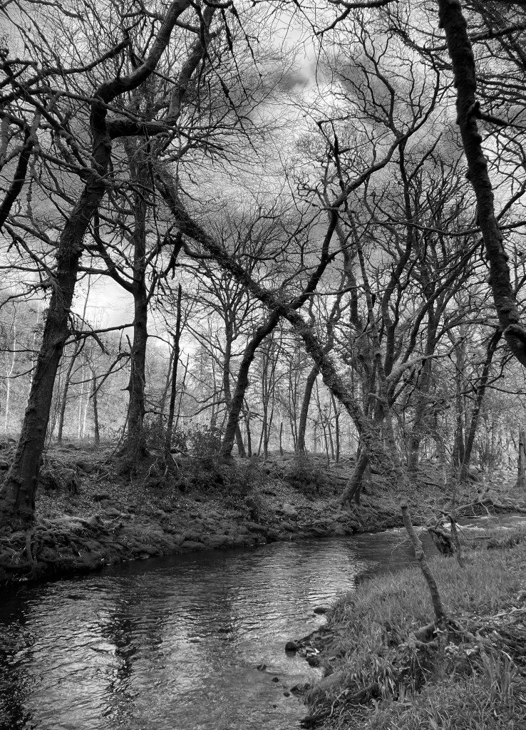 The incessant rain had stopped and a week of high pressure had been forecast. There was no rain overnight, it was time to get the rods out. As soon as I saw the river below Greystone bridge I knew I was wasting my time, it was coloured and high. Not high enough to discourage me from walking to the top of the Beat. The descent to the first croy was too dangerous, water swirled around the bottom of ladder and flood debris had gathered on the rocks. The second croy looked good, I could paddle without fear of losing my footing. I went through the motions for an hour, knowing that I probably wouldn’t connect with anything. The water was quite cold. I enjoyed the walk across the fields.