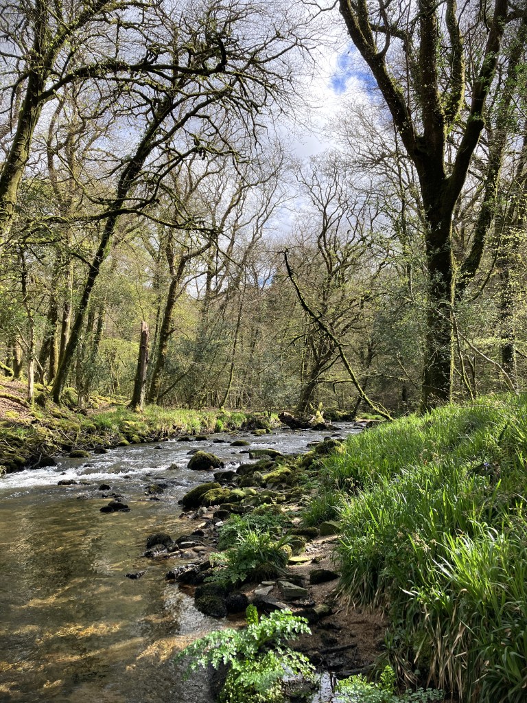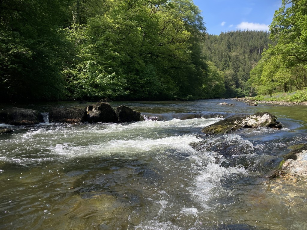 The clear blue sky allowed the sun to burn my hands. It was hot and humid. The air was full of olives and midges. I saw my first mayfly, a small specimen that made it to the tree canopy without being snapped up by a wagtail. I crept up to the top of the Beat and paused on a rock to get my breath back. Scrambling over rocks and around trees while keeping a low profile is tiring.